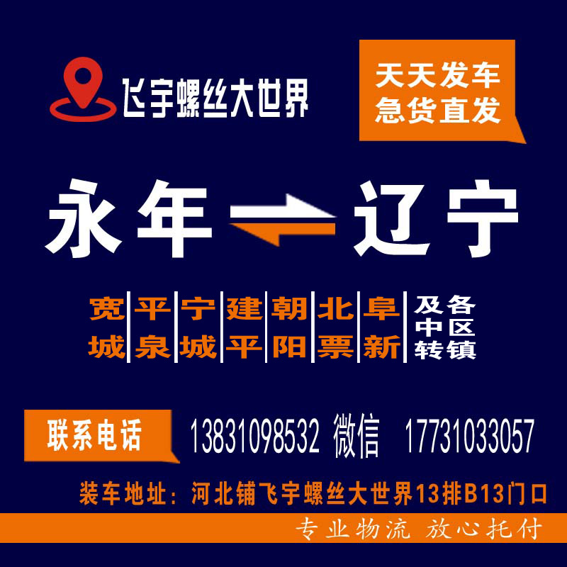 地址:永年区河北铺飞宇螺丝大世界13排B13门口
