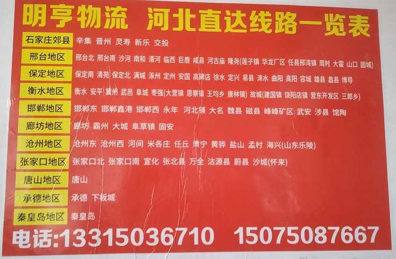 直达:辛集、深泽、安国、博野、蠡县,石家庄郊县、邢台、保定、衡水、邯郸、廊坊、沧州、张家口、唐山、承德、秦皇岛